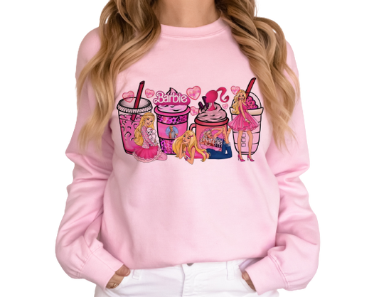 Barbie Girl Coffee Cups Pink Doll Latte Fleece Sweatshirt