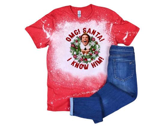 Omg Santa I Know Him Buddy The Elf Distressed Bleached Shirt | Elf Movie Funny Christmas Bleached Shirt| Christmas Elf Santa