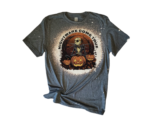 Nightmare Come True Pumpkin Nightmare Before Christmas Jack Skellington Halloween Bleached T-Shirt