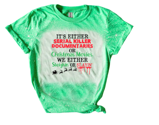 Sleighin or Slayin Crime Christmas Distressed Bleached Shirt | Christmas Movies Bleached Shirt| | Funny Christmas Shirt