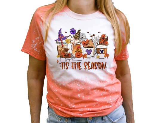 Disney Tis The Season Coffee Magic kingdom Disneyland Fall Pumpkin Spice Witch Bleached T-Shirt