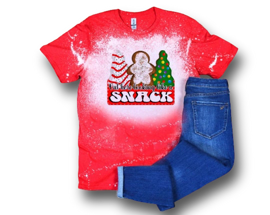 Out Here Looking Like A Snack Little Debbie Snack Distressed Bleached Shirt Funny Christmas Bleached Shirt| Christmas Tree Cake Gingerbread