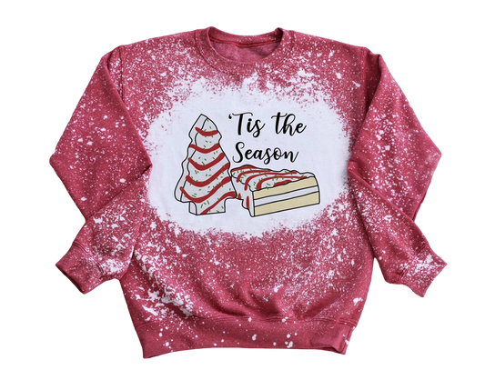 Tis The Season Debbie Snack Distressed Bleached Fleece Sweatshirt| | Christmas Sweater | Funny Christmas Tree Cake|