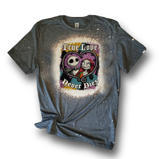 True Love Never Dies Nightmare Before Christmas Jack Skellington Halloween Bleached T-Shirt