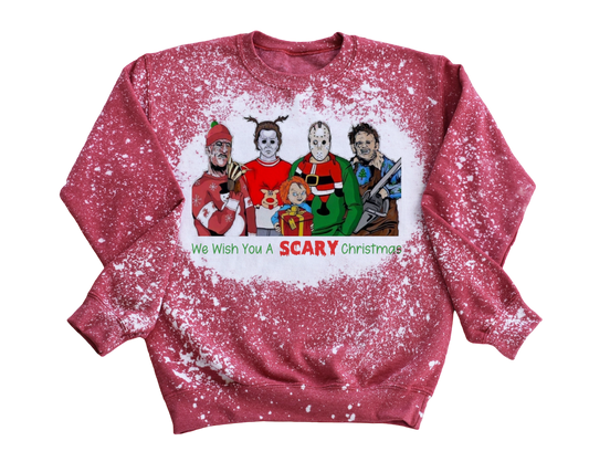 We Wish You A Scary Christmas Horror Movie Festive Freddy Bleached Fleece Sweatshirt| Christmas Sweater |