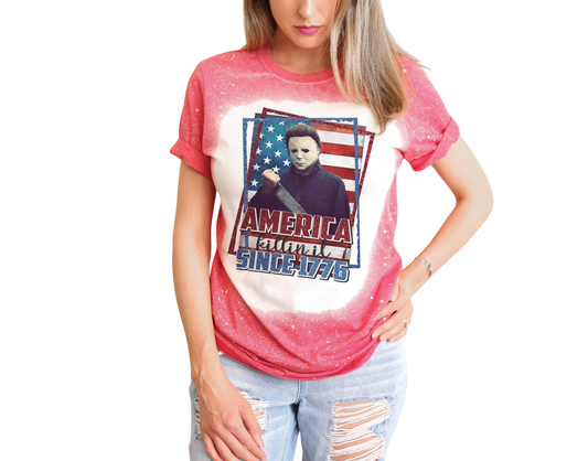 Michael Myers America Killin It Since 1775 Fourth Of July Horror Movie Slayin American Pride Flag Bleached T-Shirt