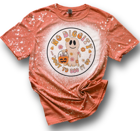 Trick or Treat No Diggity Bout To Bag It Up Ghost Halloween Candy Bleached T-Shirt