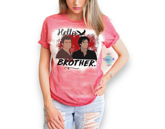 The Vampire Diaries Hello Brother Stefan Damon Salvatore Blood Show Bleached Shirt