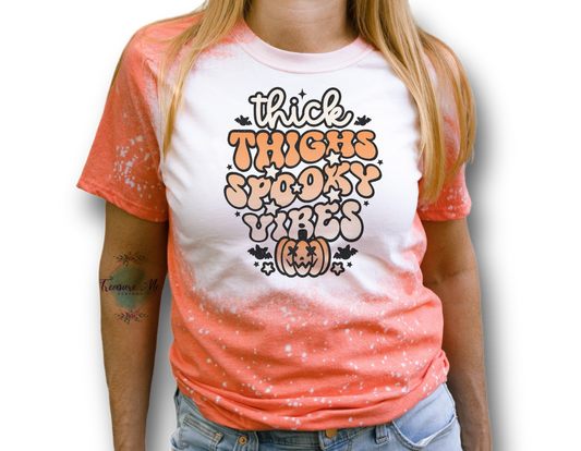 Thick Thighs And Spooky Vibes October Fall Pumpkin Halloween Bleached T-Shirt