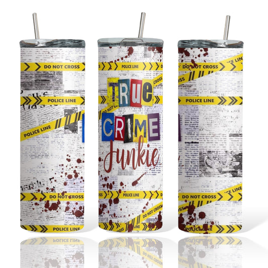 True Crime Junkie Police Do Not Cross Line Tape Sublimation Tumbler