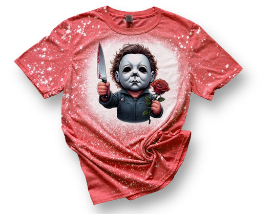 Valentines Day baby Michael Myers Cupid Love Rose Bloody Knife Bleached Tee Shirt