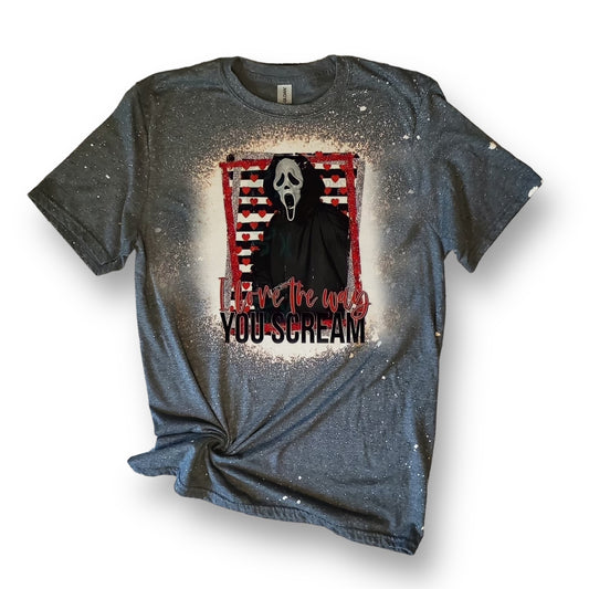 Valentine I Love The Way You Scream Halloween Mask Hearts Sublimation Bleached Tee Shirt