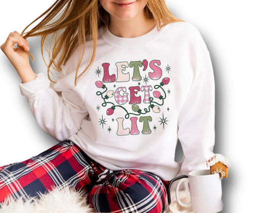 Let's Get Lit Christmas Lights Holiday Sweater Christmas Fleece Sweatshirt| Christmas Sweater