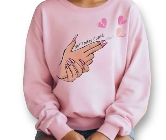 Not Today Cupid Anti Valentines Finger Pistol Hearts Valentine Fleece Sweatshirt