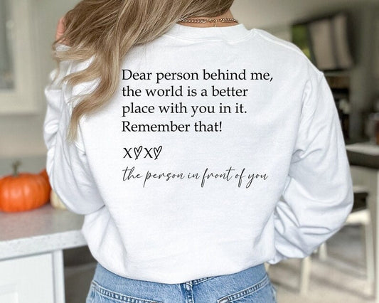 Dear Person Behind Me Sweatshirt, You Matter Sweatshirt, You Are Enough Sweatshirt, Mental Health Matters Sweatshirt, Kindness Sweatshirts
